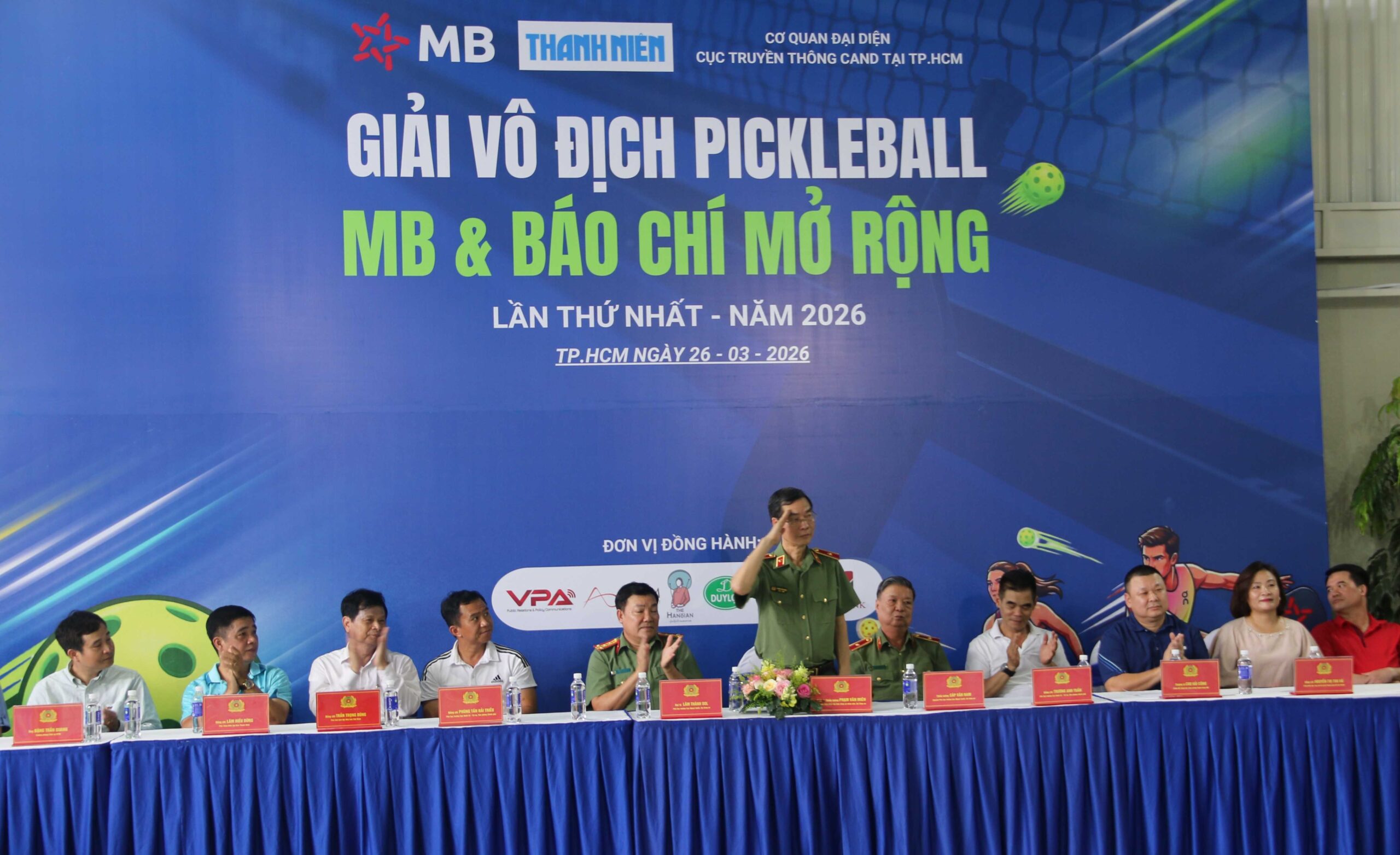 Chiều 26/3 tại TP.HCM, giải Pickleball “MB và Báo chí mở rộng” lần thứ nhất năm 2026 chính thức khai mạc, quy tụ gần 100 vận động viên đến từ các cơ quan báo chí và đơn vị thuộc lực lượng Công an Nhân dân. Sự kiện do Cơ quan đại diện Cục Truyền thông Công an Nhân dân tại TP.HCM phối hợp cùng Ngân hàng MB và Báo Thanh Niên tổ chức, hướng tới kỷ niệm 101 năm Ngày Báo chí Cách mạng Việt Nam và 81 năm Ngày Truyền thống lực lượng Công an nhân dân.